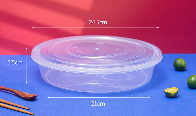 Product model: 1500 round basin 1X90 sets (transparent) Product specification: 24.5*5.5*21cm Product material: food grade PP (non-toxic, environmentally friendly) Box color: transparent Withstand temperature: 110 ℃/-18 ℃ Quantity per box: 90 sets