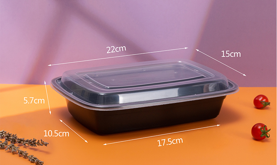 Product model: (878)32 oz square box 1X150 sets (black) Product specifications: 22*15*5.7cm Product material: food grade PP (non-toxic, environmentally friendly) Box Color: Black Withstand temperature: 110 ℃/-18 ℃ Quantity per box: 1X150 sets