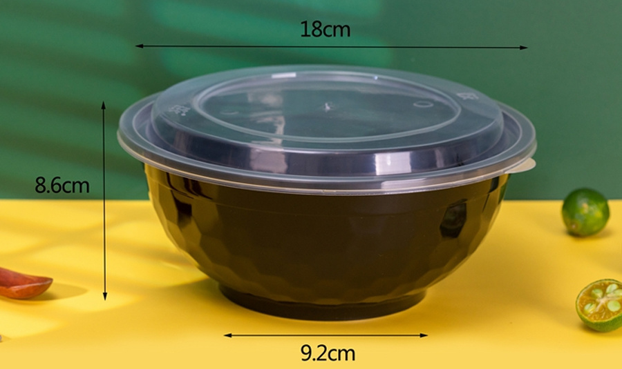Product model: export 36 oz diamond bowl 1x 150 sets (black) Product specifications: 18*8.6*9.2cm Product material: food grade PP (non-toxic, environmentally friendly) Box color: transparent Withstand temperature: 110 ℃/-18 ℃ Quantity per box: 1X150 sets