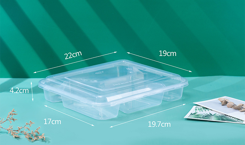 Product model: four boxes 1x 150 sets (transparent) Product specifications: 22*19*4.2cm Product material: food grade PP (non-toxic, environmentally friendly) Box color: transparent Withstand temperature: 110 ℃/-18 ℃ Quantity per box: 1x 150 sets